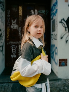 This playful yet profound juxtaposition serves as the foundation for our photography. Shot in natural daylight, we evoke the raw, unfiltered spirit of street photography—capturing moments like snapshots from a blog or a magazine. The simplicity and realness of children in oversized, structured garments deliver a striking contrast that is at once surreal and deeply relatable.